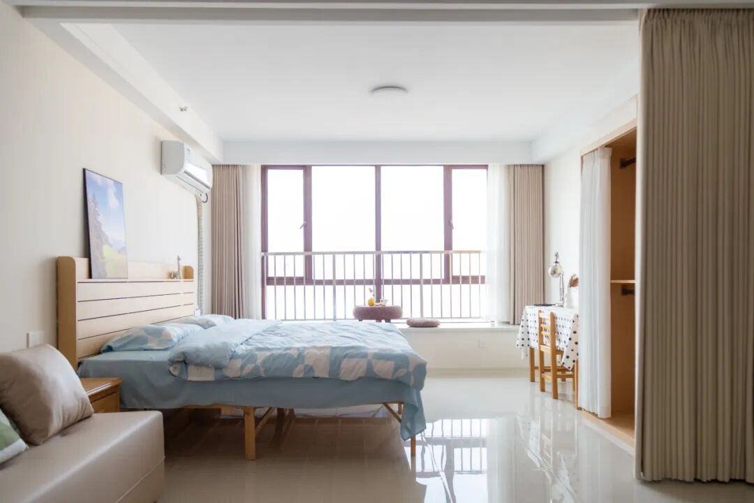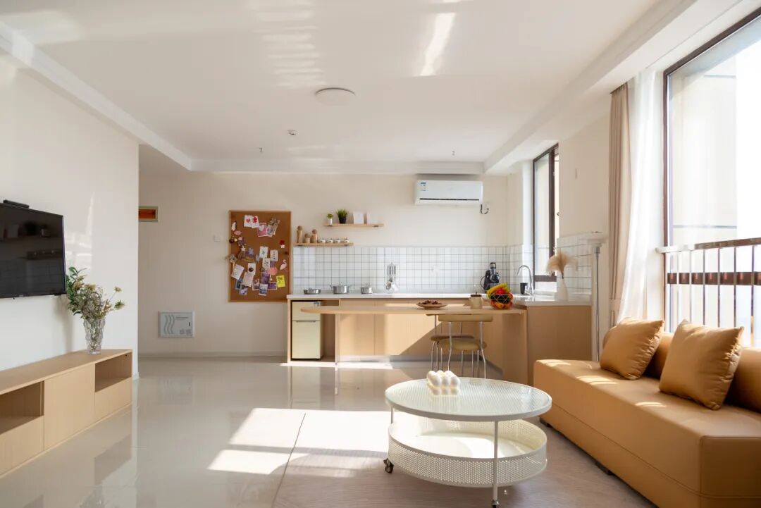 走进升级后的松苑公寓,40-80平方米的一室一厅、两室一厅等多种户型可供选择,家具、空调、热水器等家电一应俱全,更配备共创共享空间,真正实现“拎包即入住”。