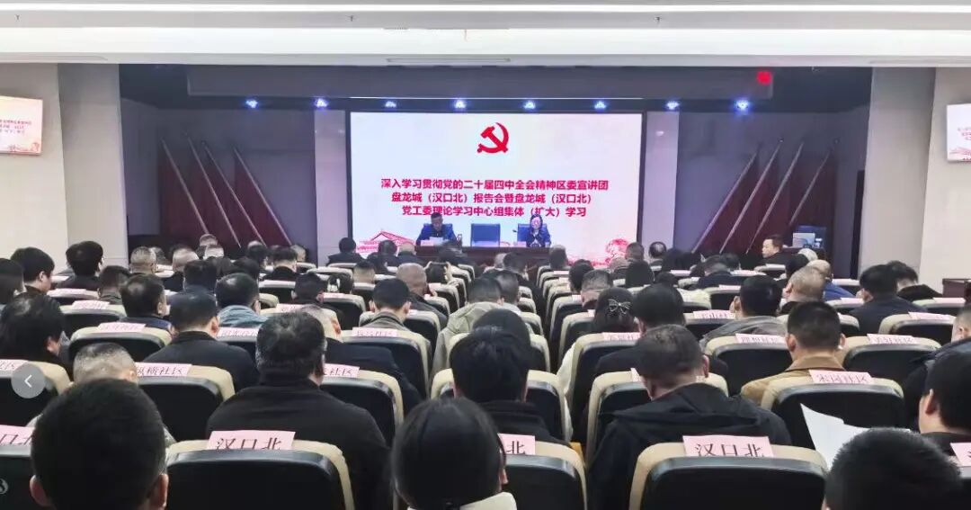 为深入学习宣传贯彻党的二十届四中全会精神,引导广大党员干部深刻领会全会精神实质,统一思想、凝聚共识,12月9日,学习贯彻党的二十届四中全会精神区委宣讲团盘龙城(汉口北)报告会暨盘龙城(汉口北)党工委理论学习中心组集体(扩大)学习在盘龙城管委会举行。黄陂区委宣讲团成员、区委党校张妍作宣讲报告,盘龙城(汉口北)党工委书记、管委会主任黄明卉主持报告会并讲话。