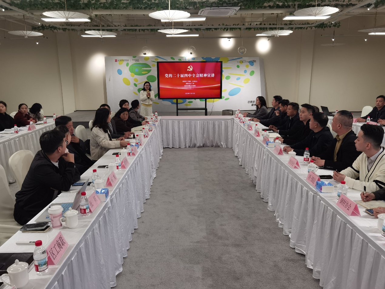 11月12日,黄陂区工商联(总商会)联合区总工会、武汉甘露山文创城举办党的二十届四中全会精神宣讲活动。30余家商协会、民营企业及市劳模代表等走进甘露山文创城,通过实地调研、专家解读、自由讨论的形式,引导民营经济人士精准把握“十五五”时期的发展蓝图。