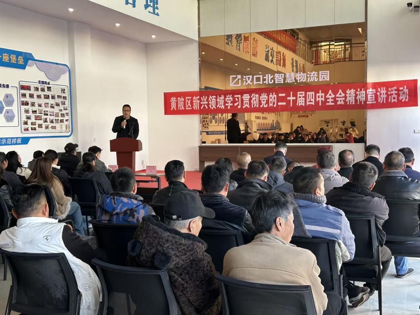 12月3日,黄陂区委社会工作部联合汉口北管委会在汉口北物流信息港司机之家开展黄陂区新兴领域党的二十届四中全会精神宣讲,推动新兴领域大思政课进驿站,来自汉口北的新兴领域党组织书记、直播电商主播、网约车司机、货车司机等新就业群体代表共50余人参加活动。