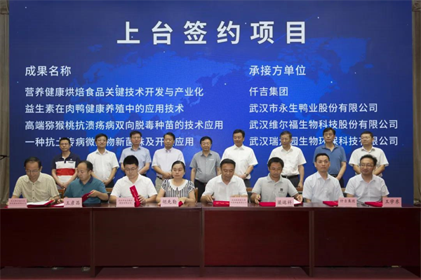在科技成果转化签约大会上,黄陂区仟吉集团等7家企业分别与华中农业大学、武汉轻工大、中科院武汉植物园、市农科院持有的8个成果转化项目开展签约合作。