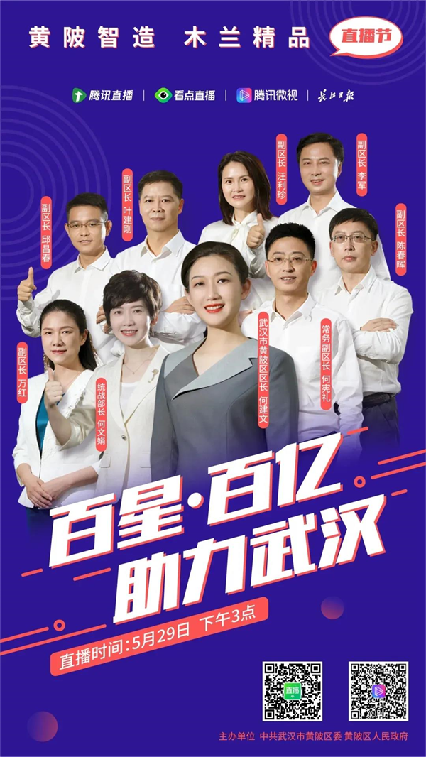 黄陂智造·木兰精品直播节启动,区领导带队为黄陂带货,积极发展电商经济、直播带货等新经济、新模式。